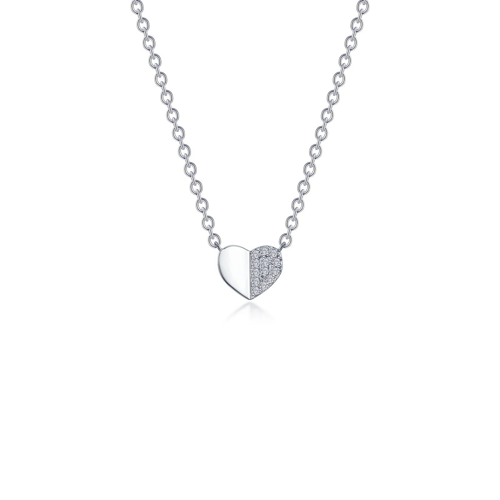 Timeless elegance for everyday wear. This heart necklace is set with Lafonn's signature Lassaire simulated diamonds in sterling silver bonded with platinum.