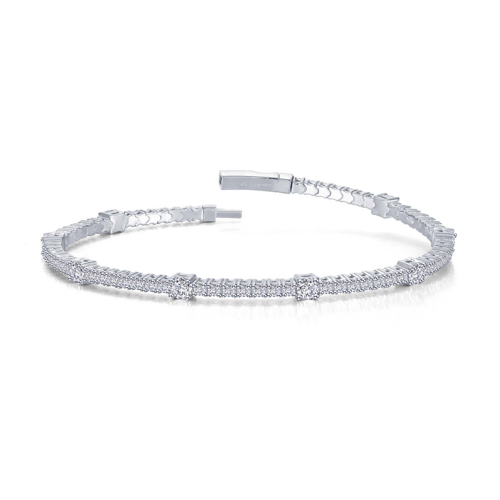Constructed with comfort and glamor in mind, this flexible station tennis bracelet is set in Lafonn's signature Lassaire simulated diamonds in sterling silver bonded with platinum.