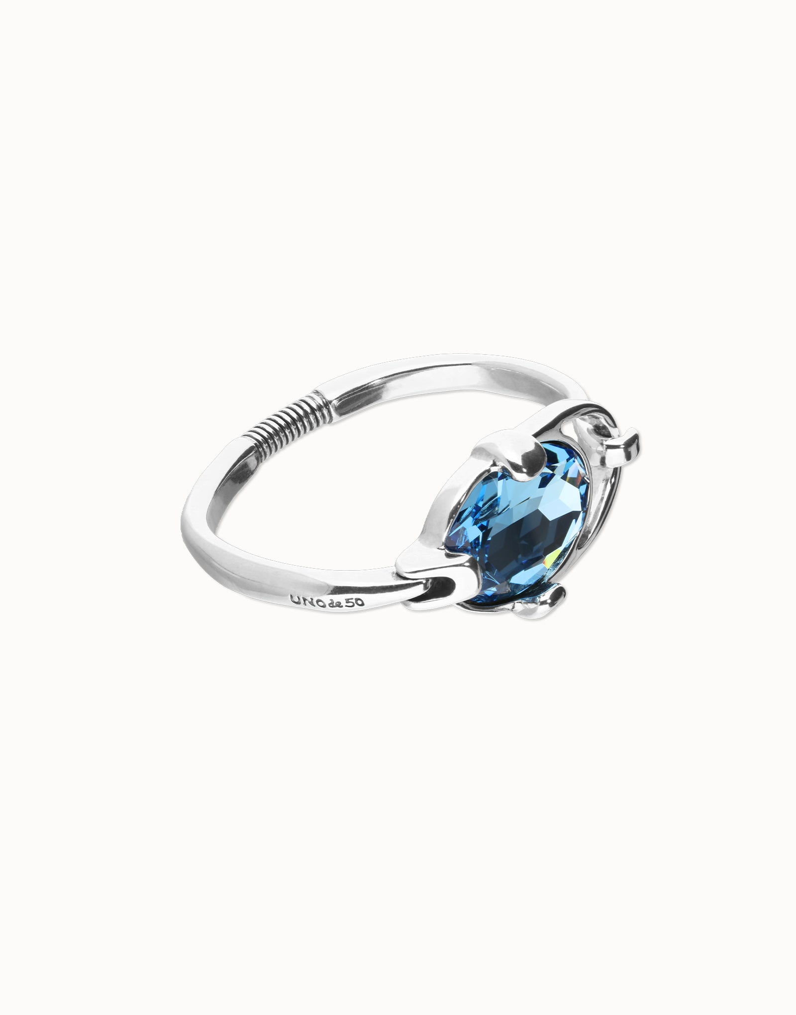 The firmness of the metal contrasts with the delicacy and deep brilliance of the crystal, creating a unique, high-impact piece of jewelry.
