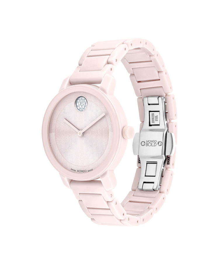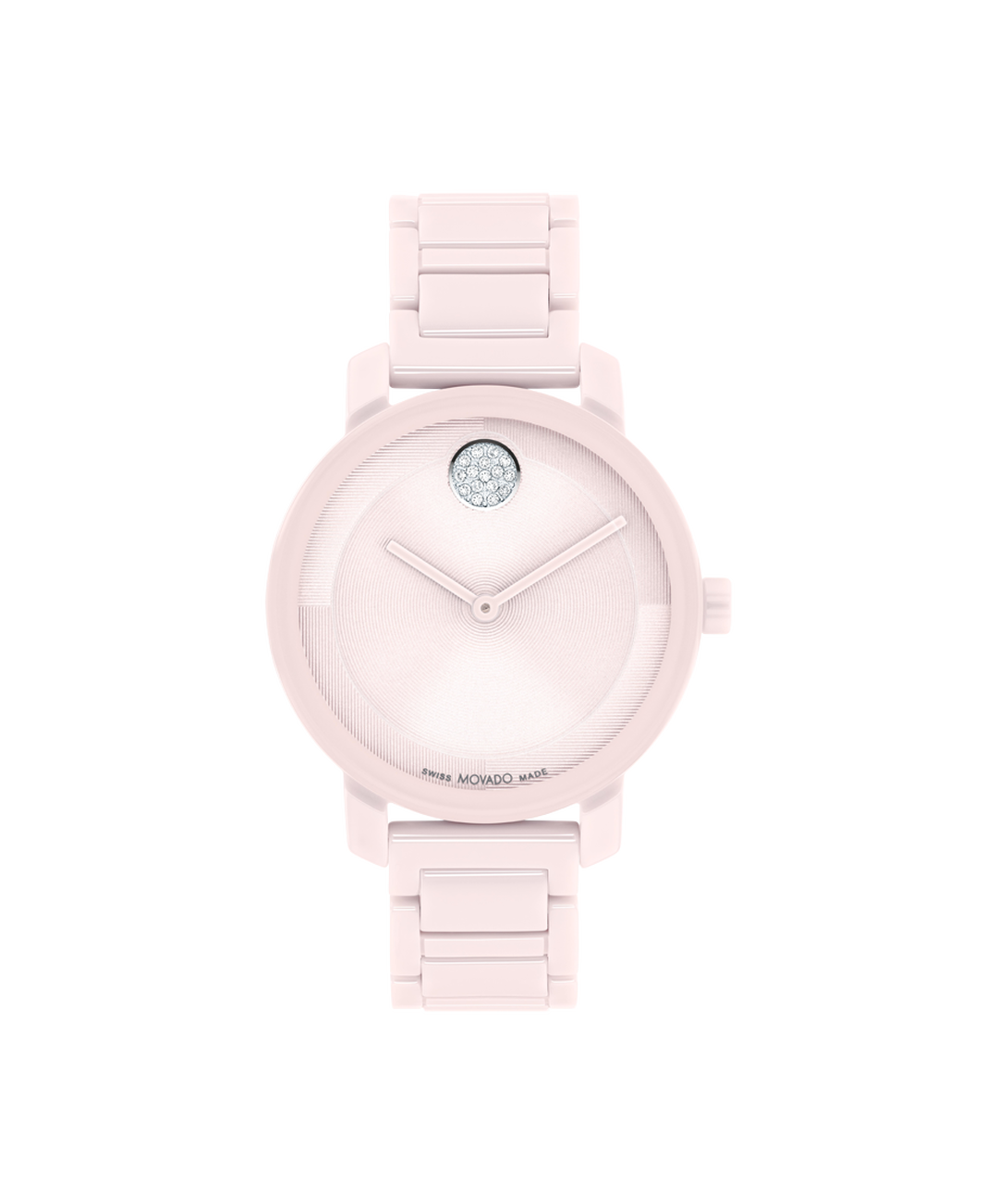 The evolution of modern design with a sharp look and elevated feel. Crafted from sleek blush pink ceramic, this timepiece features a statement-making 34mm case that houses a captivating micro-textured dial, slim hands, and our iconic dot motif at 12 o’clock in sparkling crystals. A flexible H-link bracelet in matching blush pink ceramic completes the design.