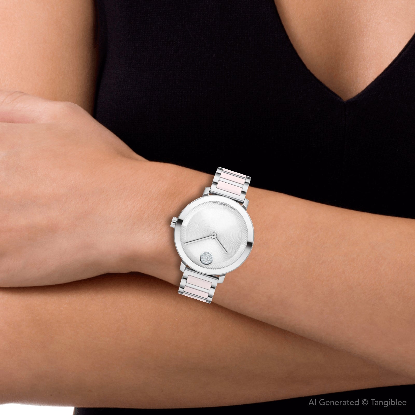 With the perfect pop of sparkle and blush-pink color, this women's Movado BOLD watch is a fashion-forward choice.