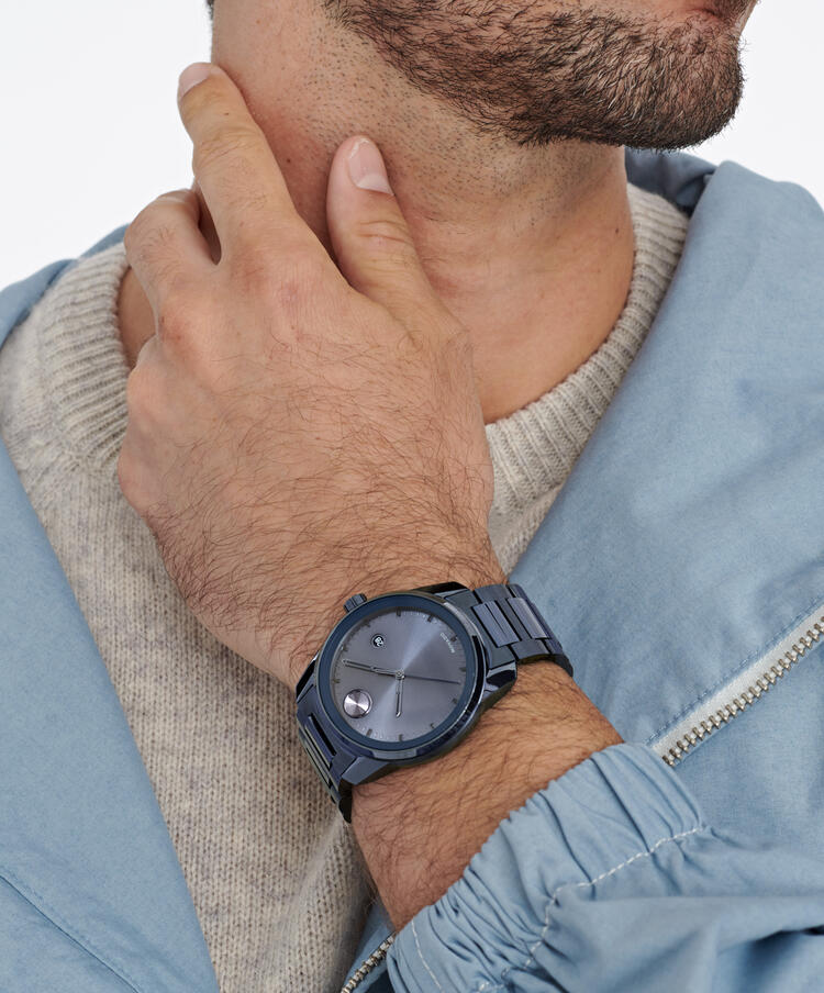 BOLD Verso, 42mm blue ion-plated stainless steel case and bracelet. Features a blue dial with Swiss Super-LumiNova® accents and date window detailing.