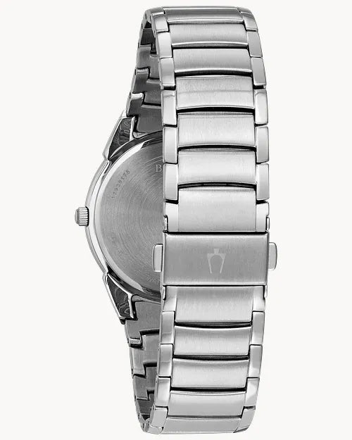 From the Classic Collection. In stainless steel with patterned silver dial, domed crystal, calendar, second hand, and fold-over clasp.