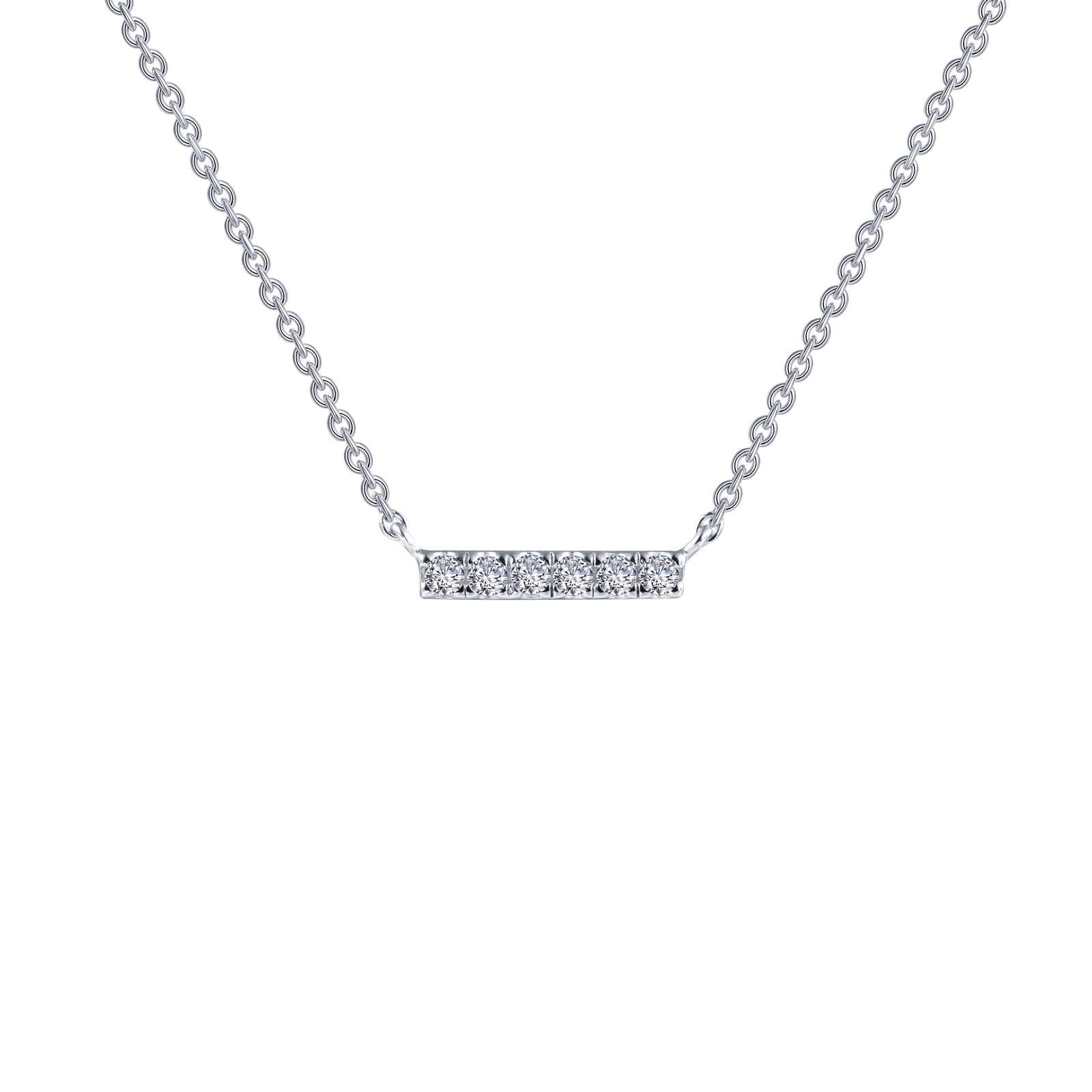 Timeless elegance for everyday wear. With just the right amount of delicate sparkle, the mini bar necklace is set with Lafonn's signature Lassaire simulated diamonds in sterling silver bonded with platinum.