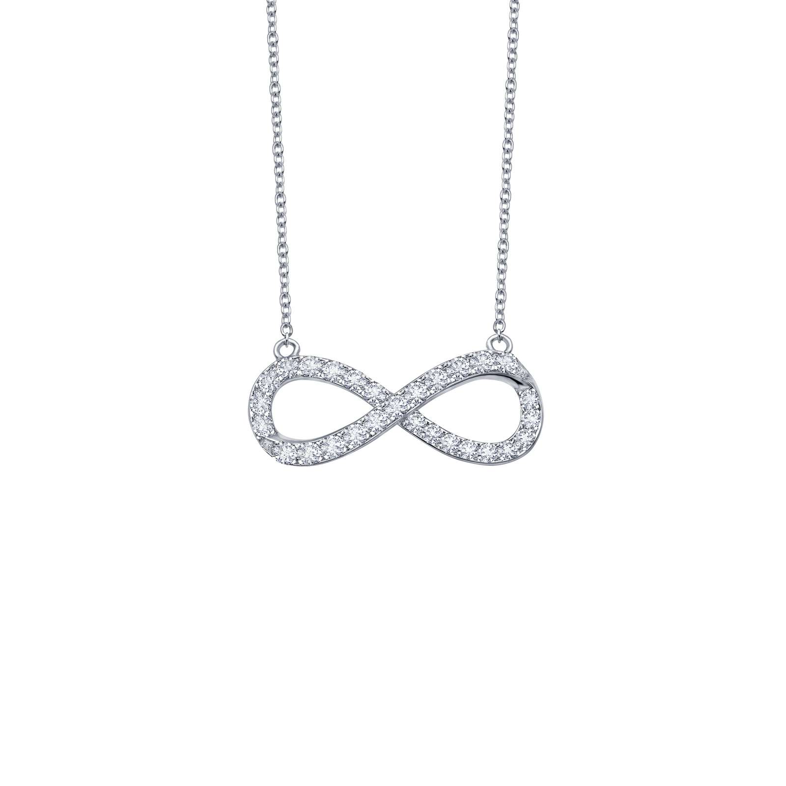 Simple yet charming. This infinity necklace is set with Lafonn's signature Lassaire simulated diamonds in sterling silver bonded with platinum.