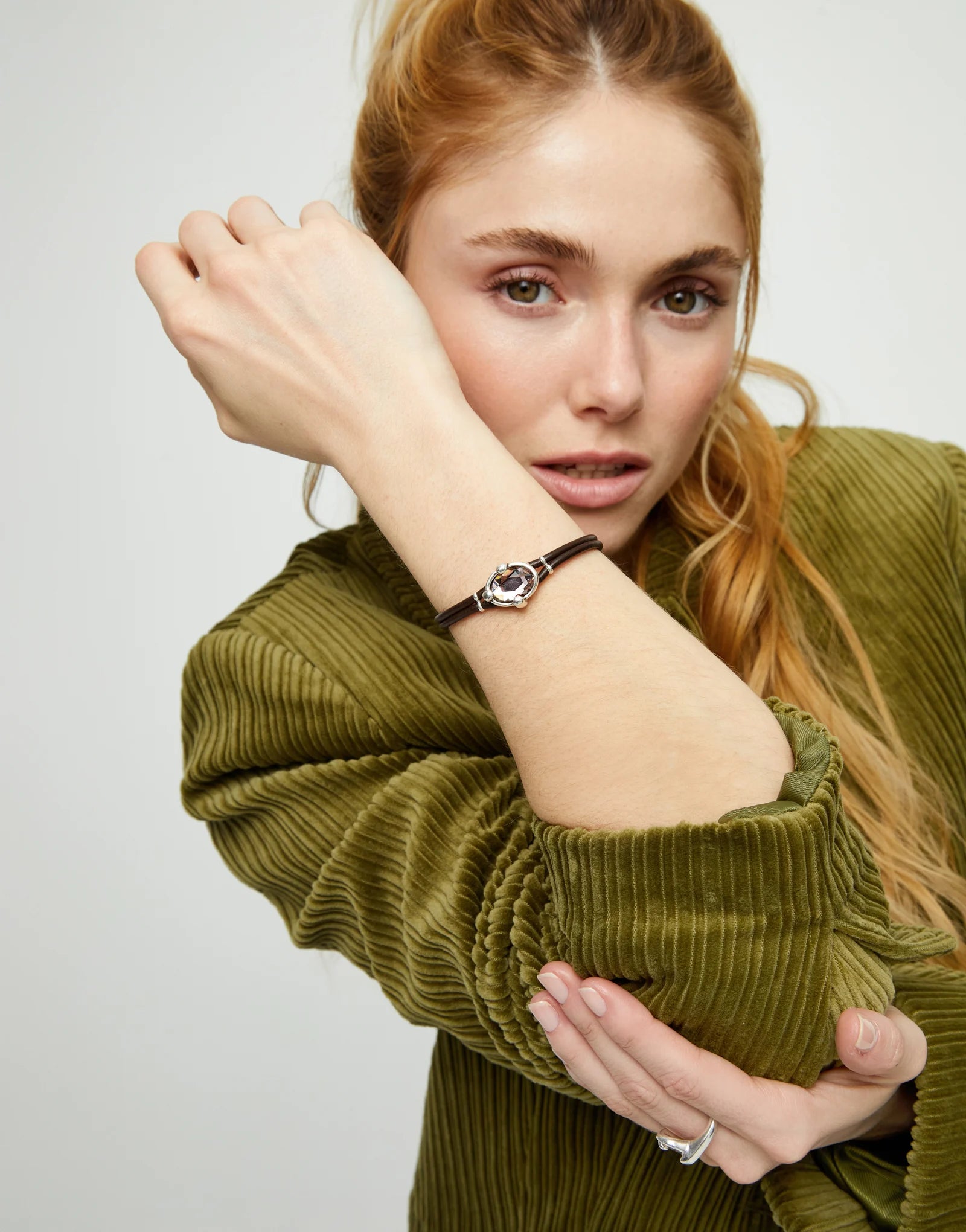 Ideal for those looking for a sophisticated leather bracelet that combines the versatility of casual with the elegance of designer jewelry.