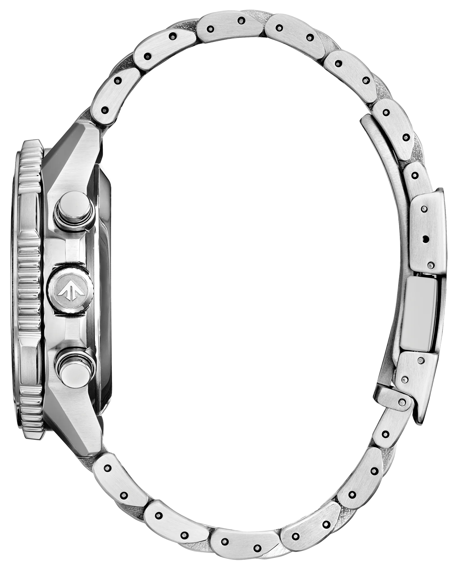 With advanced technology paired with an incredibly bold look, the latest Promaster Air Navihawk reaches a higher altitude in style. The watch's silver-tone stainless steel case measures 40mm in diameter, wearing boldly with its sharp faceting and satin finishing, while a slide-rule scale on the bezel provides additional flight utility. A triple-link stainless steel bracelet secures the timepiece to the wrist.