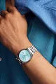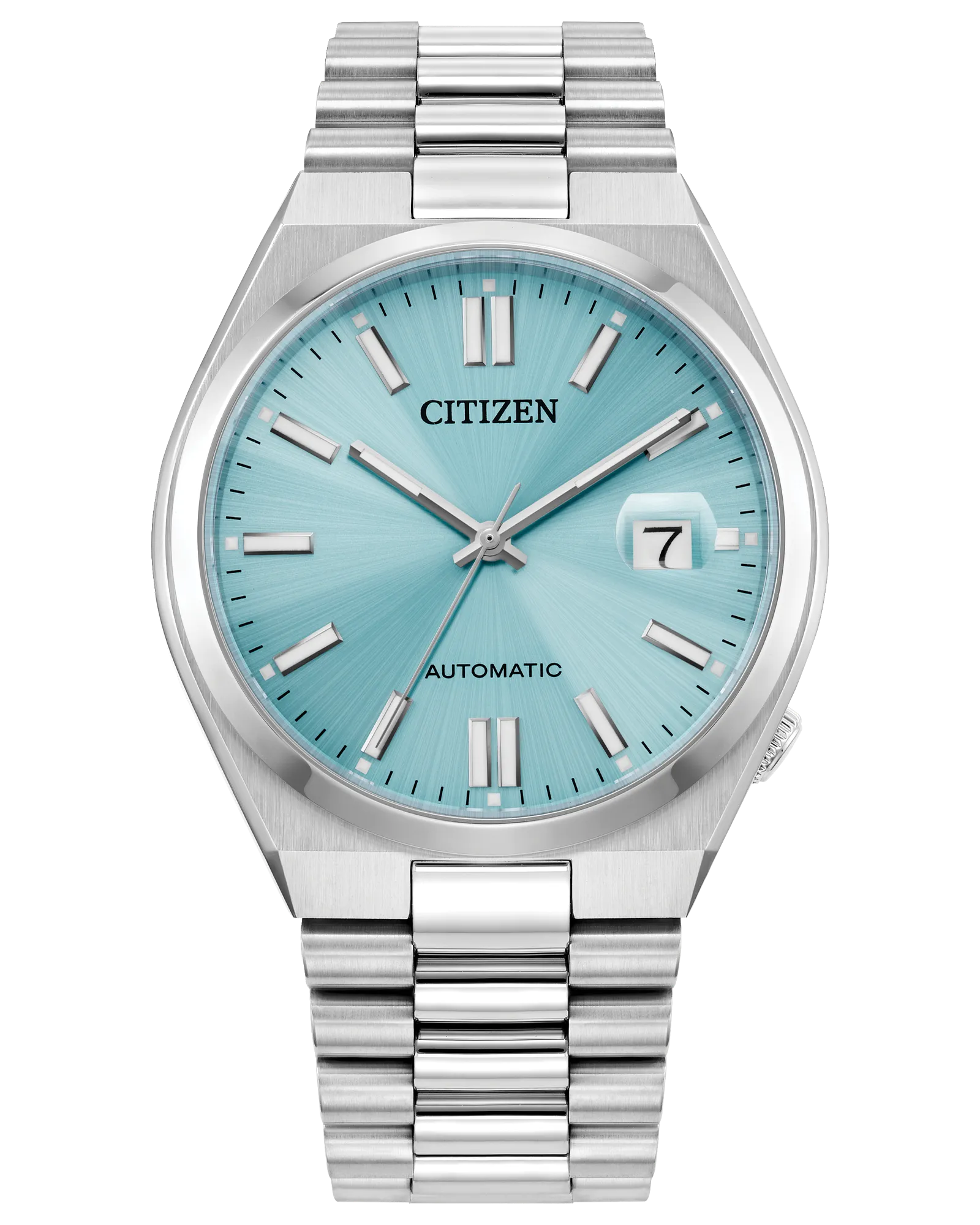 The TSUYOSA Automatic, from the NJ015 series, brings ultramodern sports styling right to your wrist. Executed in a versatile 40mm footprint, the sophisticated design of the watch makes a strong impression via a silver-tone stainless steel case and a seamlessly integrated, matching bracelet. Underneath an anti-reflective sapphire crystal, the sporty timepiece makes use of a sunray sky blue dial, with a 3 o’clock date window and contrasting silver-tone details adding to its classic aesthetic. Powered by an automatic movement and offering up to 50 meters of water resistance, the refined timepiece is a daily wearing choice ready for work, play, and everything in between. Caliber 8210.